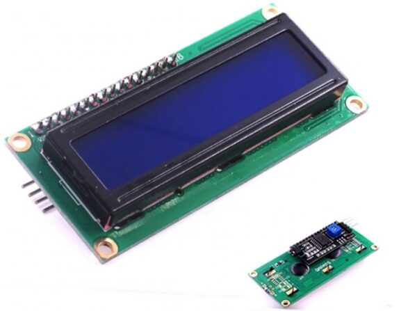 LCD display obsahujúci 2 riadky a v každom riadku je možné napísať 16 znakov. Display má modré podsvietenie s bielym písmom. Pre informácie o zapojení k Arduino skontrolujte návrhy na tutoriály na karte Ďalšie informácie. Keďže na zadnej strane displeja je už napájkovaný I2C modul, pre ovládanie displeja budu stačiť iba 2 kábliky.